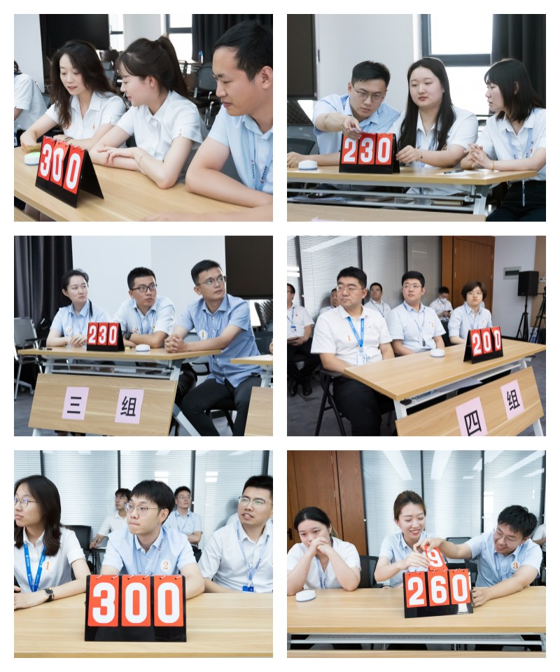 在個(gè)人必答環(huán)節(jié),選手們睿智沉著、對(duì)答如流,勢(shì)均力敵;搶答環(huán)節(jié),各組聚精會(huì)神,默契配合,拼腦力、比手速、展實(shí)力,比分“你追我趕”,場(chǎng)上氣氛緊張刺激,掌聲連連;風(fēng)險(xiǎn)題環(huán)節(jié)的驚險(xiǎn)賽制更將比賽推向高潮,各組博弈交鋒,上演了一場(chǎng)精彩的腦力與知識(shí)的“較量”,展現(xiàn)了集團(tuán)員工扎實(shí)的理論功底和良好的學(xué)習(xí)成效。